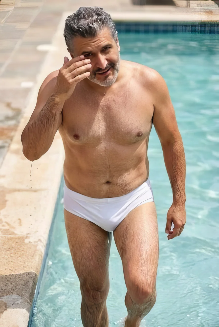 Feeling that rebel energy tonight... slicked back, leather tight, loaded and ready for trouble 😏🏍️ Come find more of this vibe on IG: @daddy_fernandor 🔥 Who's brave enough to ride along? 🌳💦 #HairyBear #MatureDaddy #LeatherKink #BushLover #DaddyVibes #BigBulge #RebelBear #MuskyDaddy #LowHangers #SilverFox